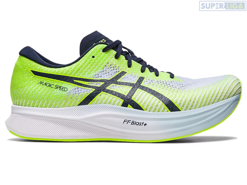 Кроссовки MAGIC SPEED предназначены как для участия в забегах на скорость, так и для обычных тренировок. Это универсальная модель, которая поможет вашему телу и духу достигнуть новых личных высот. · Технология GUIDESOLE, созданная для того, чтобы подталкивать ногу вперед, действует в сочетании с углеродной пластиной в мыске. Это создает ощущение плавного переката во время движения. · Обычно, чем больше вспененного материала добавляется в кроссовки, тем тяжелее они окажутся. Однако, материал FF BLAST в промежуточной подошве лучше адаптируется к движению, не утяжеляя кроссовки.